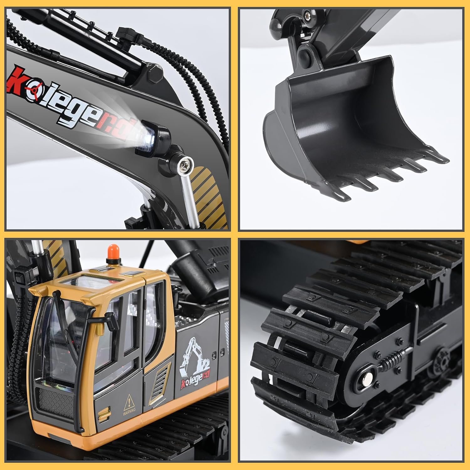 - 【2.4Ghz Anti-interference, Auto Pairing】No need to sync remote and excavator. 10-100 feet control range or more. You can play multiple 2.4Ghz toys at together without signal confusing. Playing with other kolegend construction vehicles will give kids more fun of coordination.